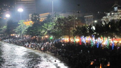 ↑ビーチにもすごい人。ビーチから花火を見るのもいいと思います。