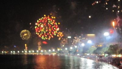 ↑花火自体は何日も前から、31日ももっと早い時間から上がっていますが、カウントダウンの時は北から南まで一斉に花火が打ちあがり壮観です。
