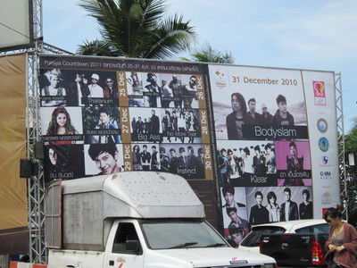 ↑こちらは、バリハイ(WSの先の港のあるエリア)の所で行われるカウントダウン・ライブの宣伝。昼間、様子を窺いに行きました。