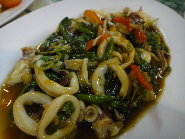 ↑イカのバジル唐辛子炒め。悪くはないけれど、また食べたいほどではなかった。