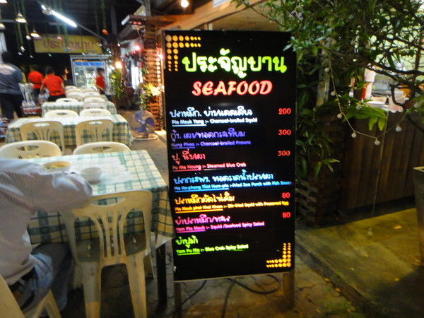 料金的には、安く済まそうとすれば2人で300Bくらいから可能だし、かなり豪勢に食べても2人なら1000Bは超えないような気がします。