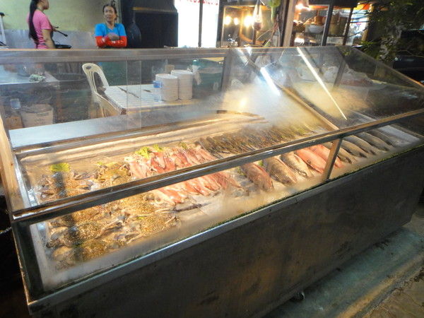 ↑シーフードを並べたショーケース。ここを見て何を食べるか決めてもいいかも。水槽とかはありません。