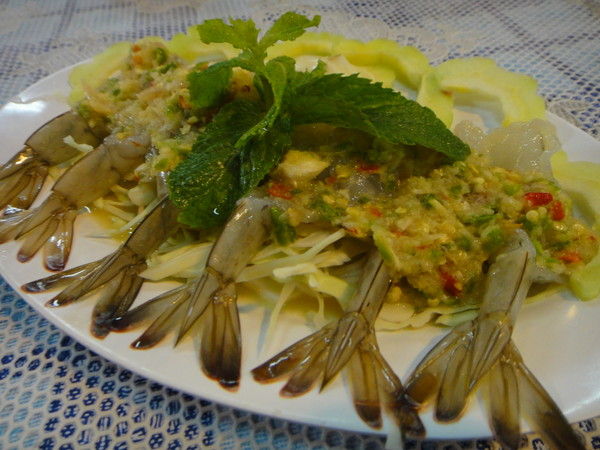 クチャーナンプラーの海老もワサビ醤油で食べたら、少しだけボタン海老気分に。