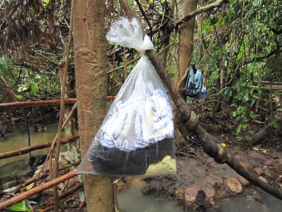 お金をビニール袋に入れたり、防水財布に入れて身につけられたらベストだと思います。