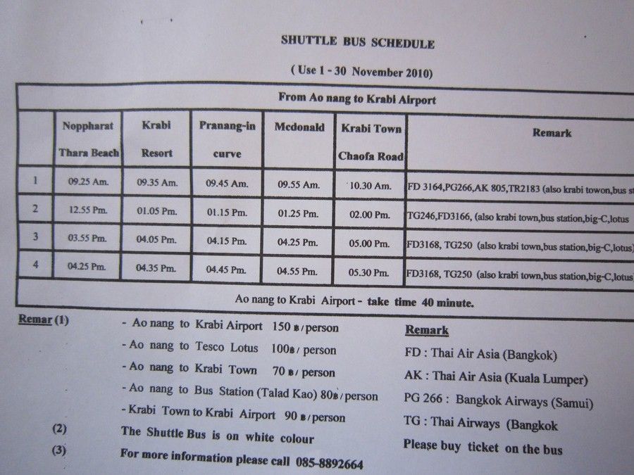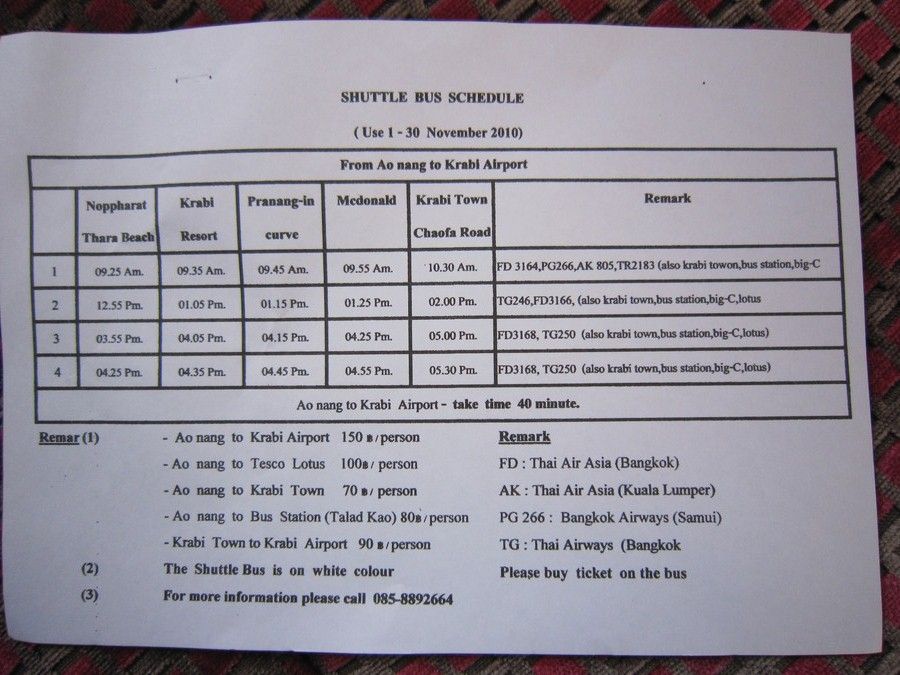 ↑チケットにくっついていたのが、帰りのクラビ空港行きバスのタイムテーブル。
