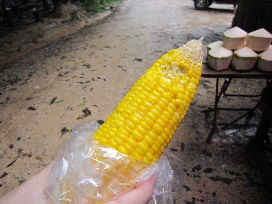 ↑クリスタルプールの入口でとうもうろこしを思わず購入。20B(約50円)。