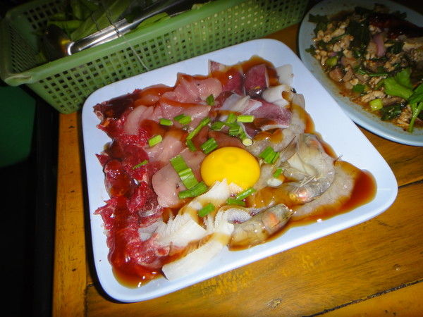 調理しているのを見ると美味しそうではありますが、昨今、日本でも怪しいのに、タイで生肉を食べる勇気はありません。
