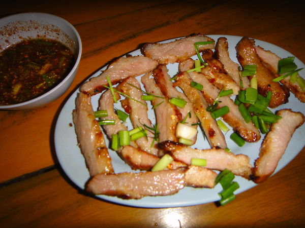 ↑上記とかぶるけど、ムーヤーン(豚肉焼き)も絶品。喉肉(コームー)なのか、単なる豚肉なのかは不明。