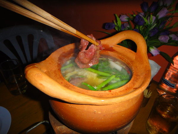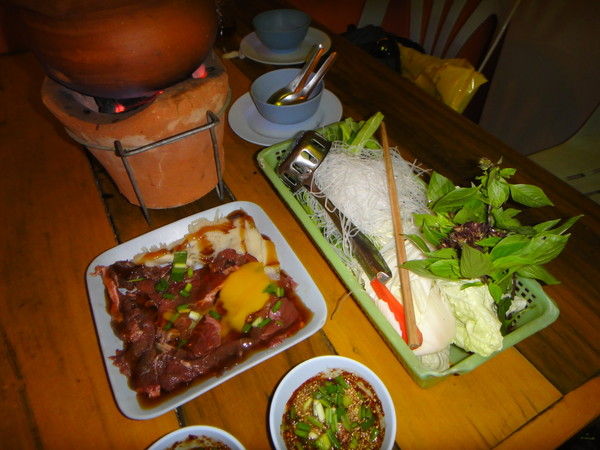 そして、写真では見えないけど、器の下を火であぶっているのでスープが温かいまま。