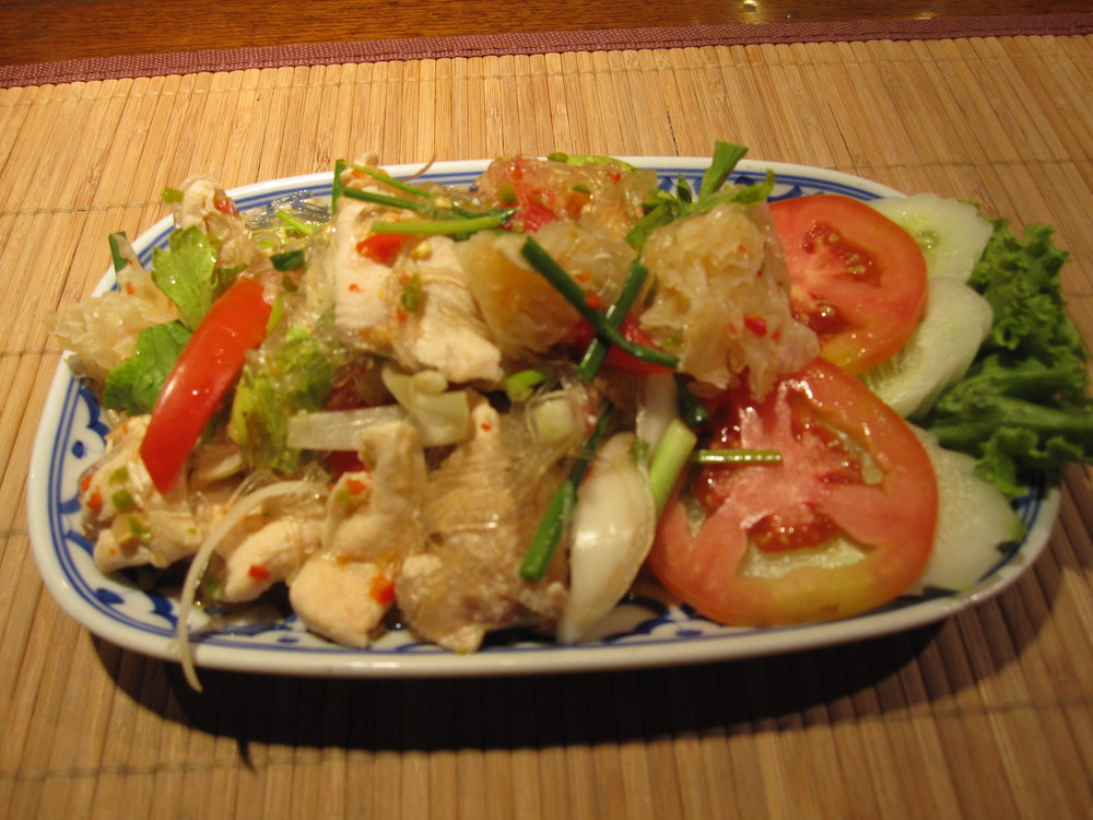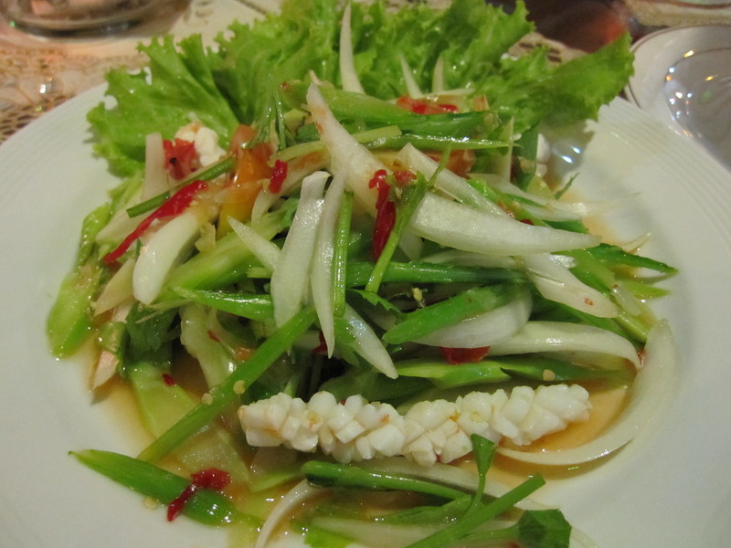 ↑試しに、お料理も頼んでみました。イカのスパイシーサラダ。