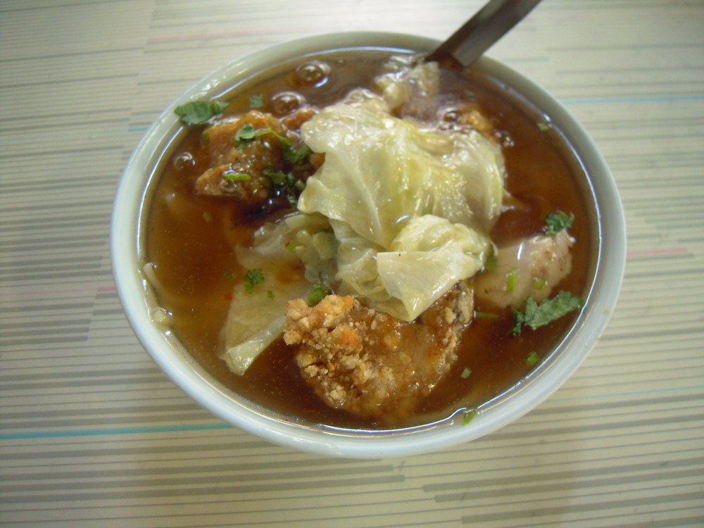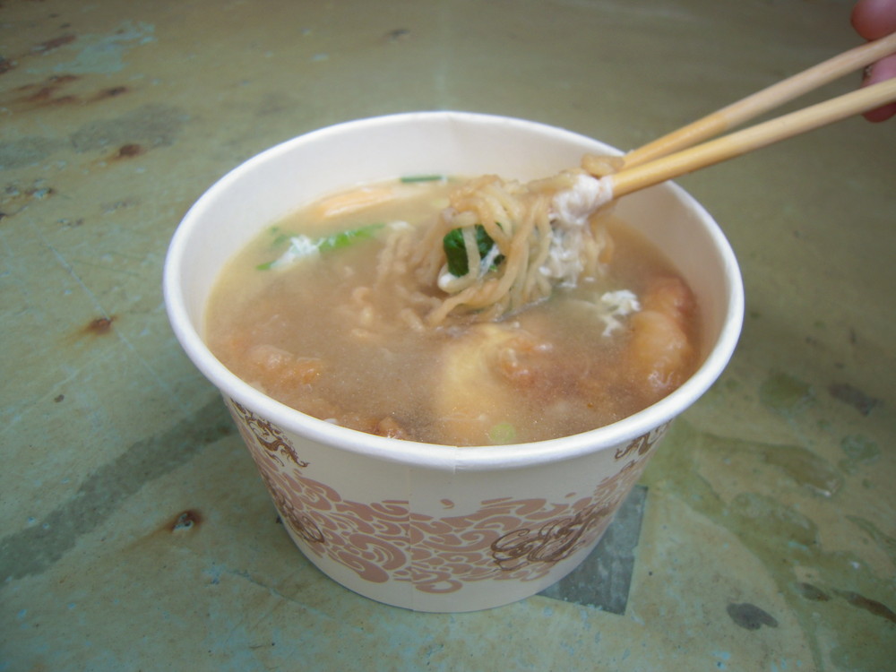 あんまり覚えてないけど、に、魚を揚げものが入ったあんかけ麺のようなもの。