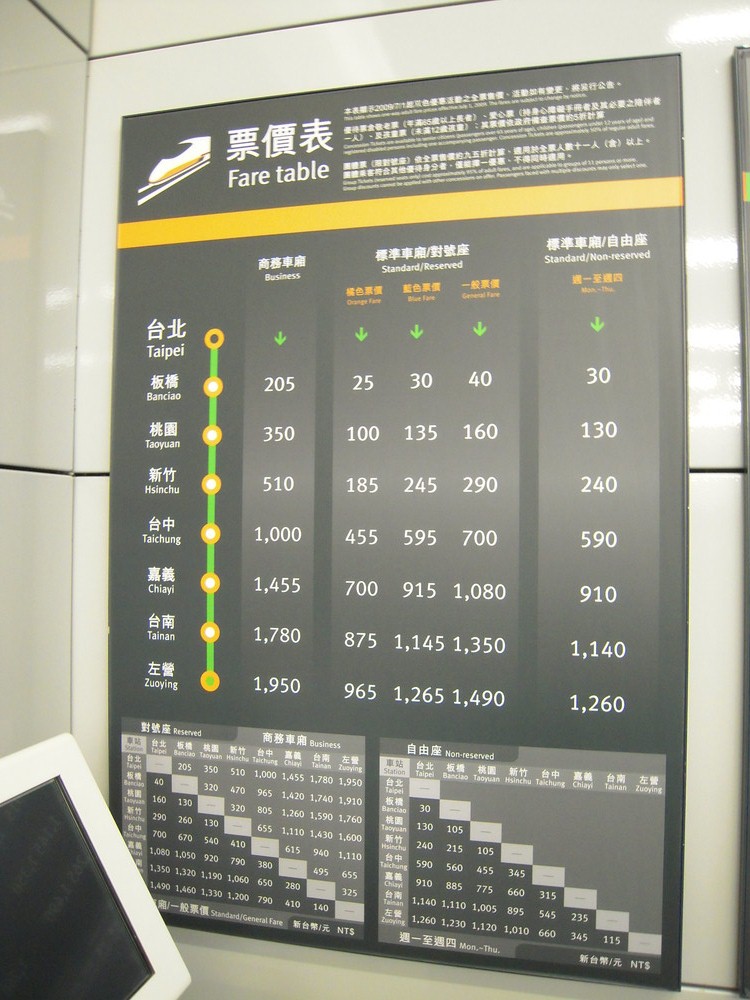 どの便が安いか等の詳細は、こちらの台湾高速鉄道のサイトを見てください。