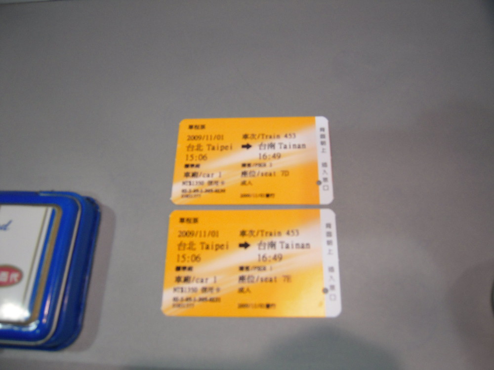 2009年秋の台湾旅行、2日目の午後、台北から台南へ移動です。